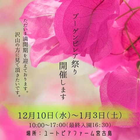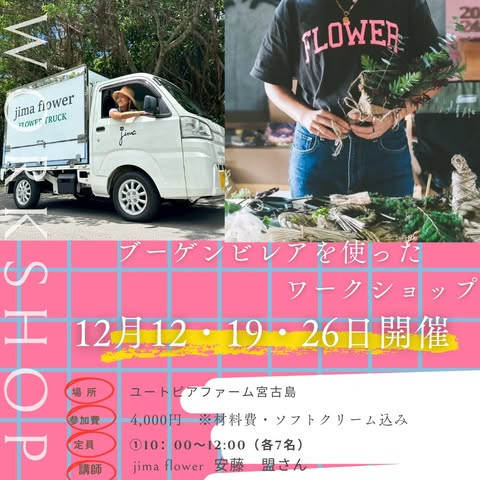 ブーゲンビレアが一年のうちで1番綺麗に咲く時期の開催となります。今回、ブーゲンビレアのお花を使いクリスマスやお正月にピッタリなワークショップをご用意しております。