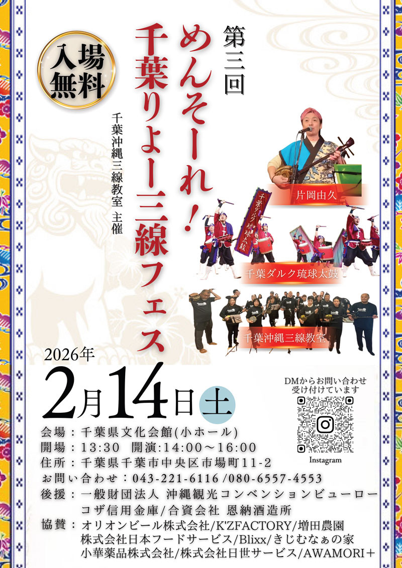千葉県ではかつてないほどに「沖縄ブーム」が高まっています。同時に、昨今の小学校や中学校の音楽の教科書に「三線」が紹介されるなど、歴史や文化に多くの注目が集まっています。