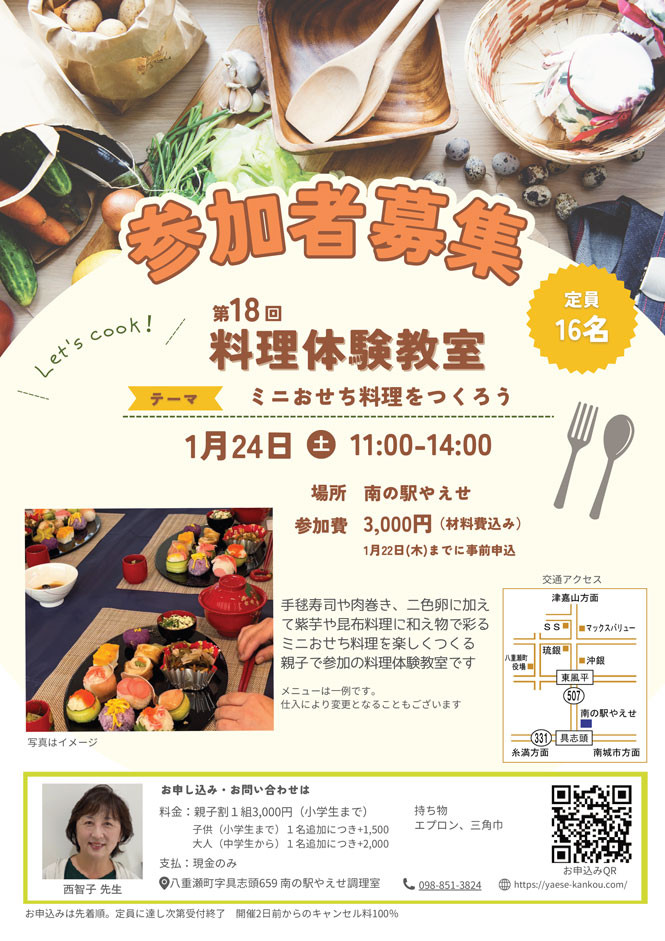 第18回 南の駅やえせ料理体験教室 募集開始!