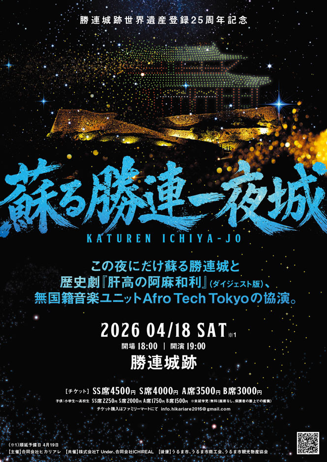 沖縄・世界遺産【勝連城跡】において、文化と最先端テクノロジーを融合したナイトイベント「蘇る勝連城一夜城」を開催することになりました。勝連城跡世界遺産登録25周年を背景に、地域文化の継承と観光価値の創出を目的としたプロジェクトです。