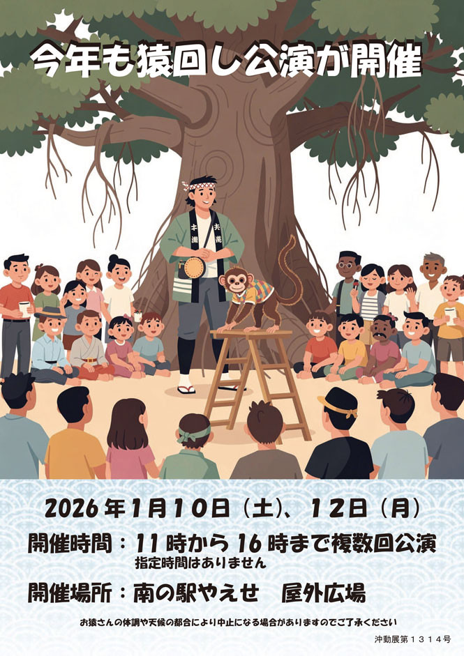 ※お猿さんの体調や天候の都合により中止になる場合がありますのでご了承ください。
