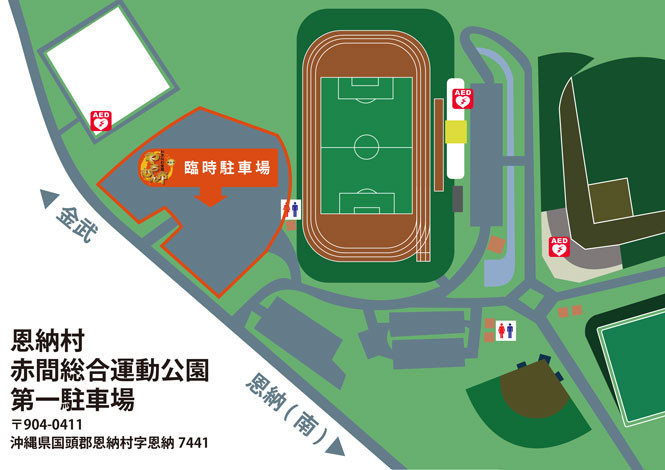 臨時駐車場は、赤間総合運動公園内に約400台分ご用意しておりますが、台数には限りがございます。