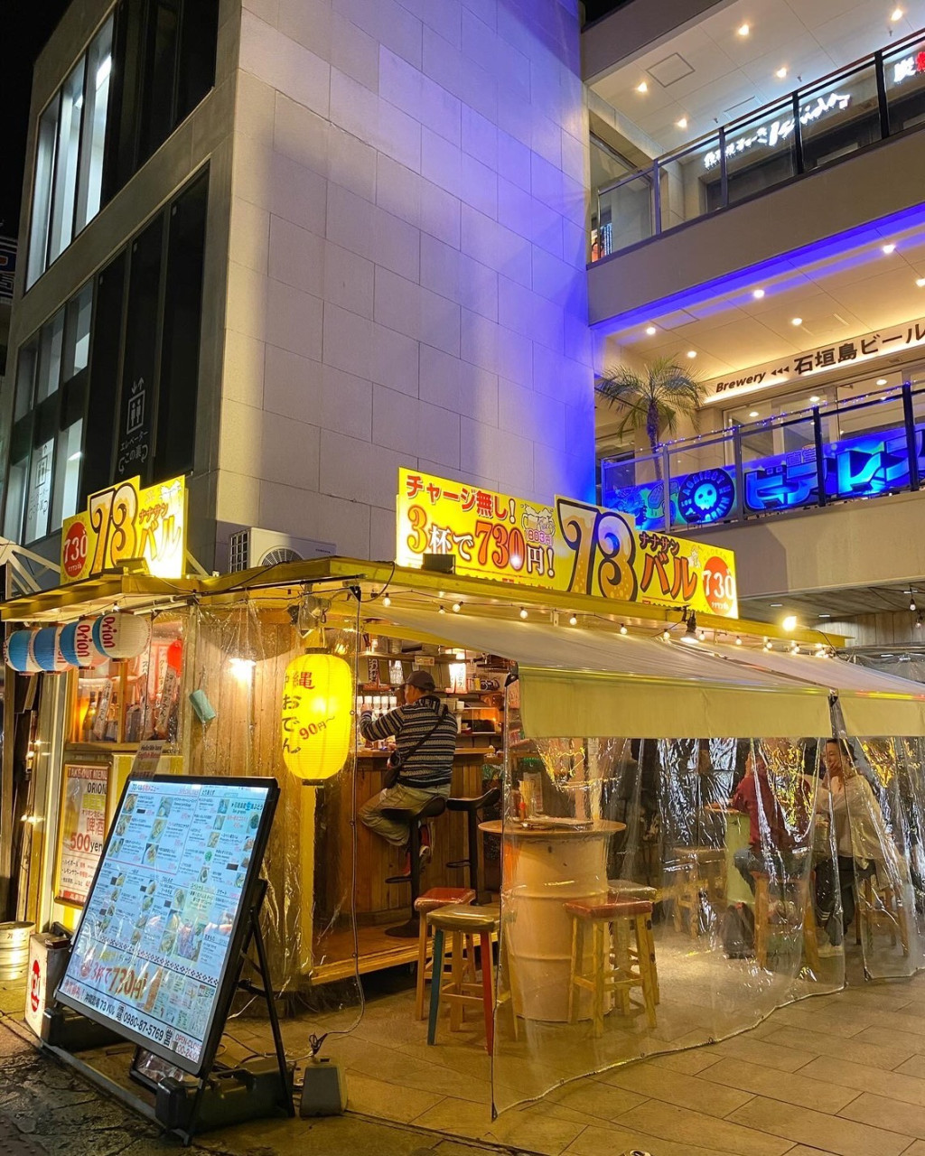 南国感たっぷりの730交差点目の前オープンバル、ダイニングバー、屋台バル。 730円でドリンク3杯が飲める【73ベロ】+90円でオリオンドラフト生ビールも3杯飲める! 沖縄料理や島産の厳選素材を使っての創作料理などのフードメニューも充実しており、食べて飲めるお店となっております。年中無休!キャッシュレス対応