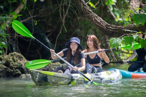 カヤック・SUPに乗って川の上での、非日常的な時間をお届け。亜熱帯を代表する植物、「マングローブ」やマングローブ林に生息する、カニやハゼといった小さな生き物たち、川にやってくる野鳥といった、沖縄ならではの自然を体感できます。
