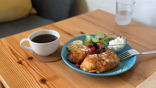 降りそそぐブーゲンビレアを眺めながら、 宮古島マンゴースイーツはいかがですか?