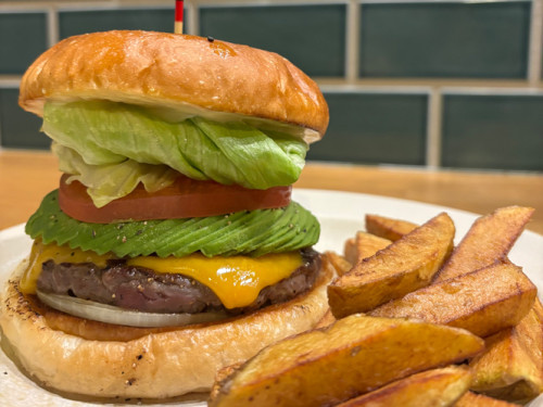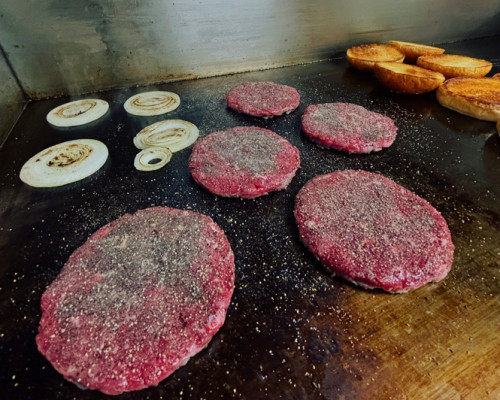 当店のハンバーガーは通常のミンチを形成したパティ(お肉)とは違い、塊肉の状態から包丁で脂身や筋を丁寧に取り除きカットしていくハンドチョップ製法です!まるでステーキののように肉にくしくジューシーな味わいが感じられるハンバーガーです!是非!沖縄で食べて欲しい!