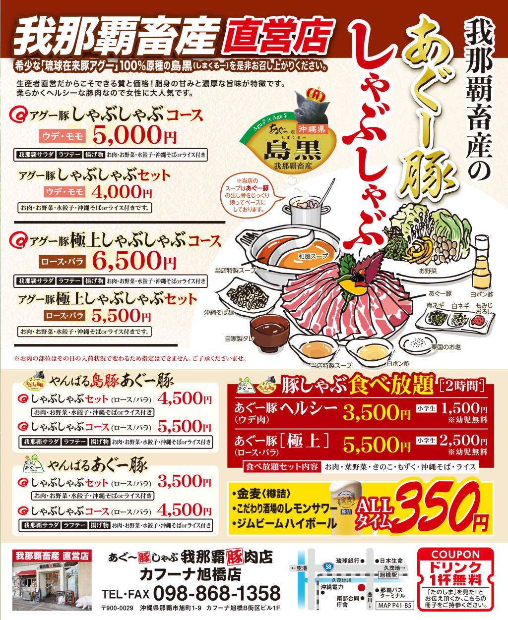 ■あぐー豚[極上](ロース・バラ) 5,500円 小学生2,500円 ※幼児無料