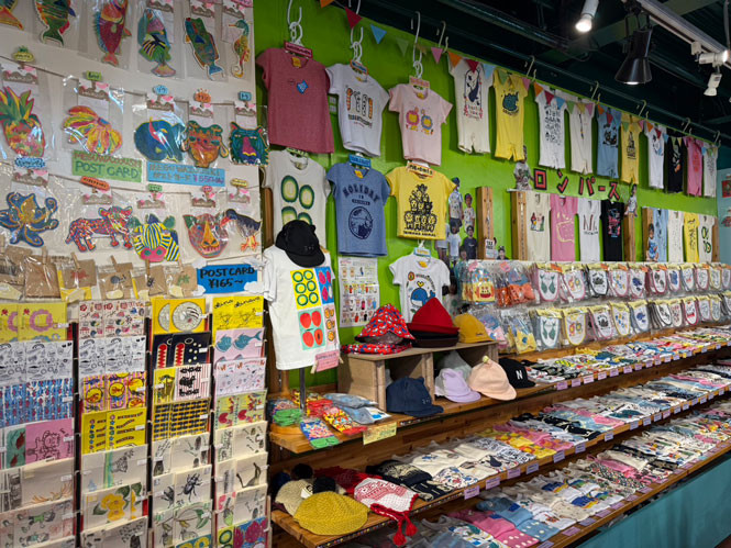 沖縄をテーマにしたデザインTシャツがたくさん。サイズも子供用から大人用まであるので、ご家族、お友達同士でお揃いができる!!また、沖縄で活躍しているアーティストの商品も取り扱っているので、沖縄を感じれるショップです!