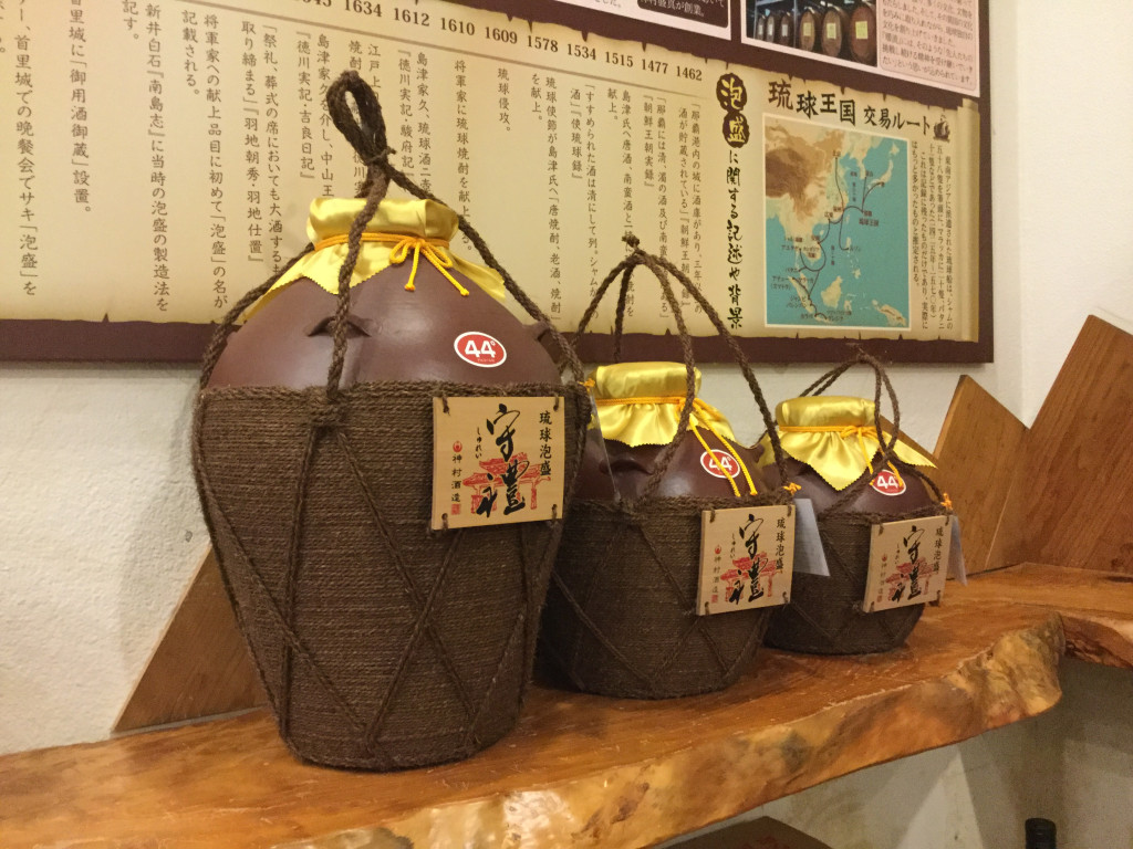 神村酒造蔵元直売店『古酒蔵(くーすぐら)』では、泡盛の製造工程のDVD上映や神村酒造の商品の販売を行っており、中でもお客様のメッセージ付きのボトルをお預りする地下蔵預り古酒サービスが人気です。