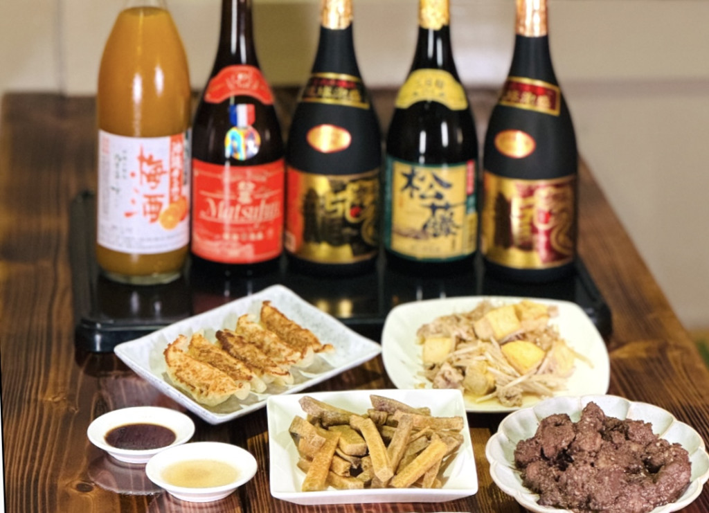 金武の特産品を取り入れた料理「金アグーギョーザ」や老舗豆腐店「山田とうふ店」の豆腐を使う「山田とうふの豆腐チャンプルー」、田芋をポテトフライのように調理した「田芋フライ」のほか、アルコール類は、金武酒造の「龍(たつ)」や酒造・松藤の「松藤」などの地酒も楽しめる、金武町の美味しいが詰まったお店。