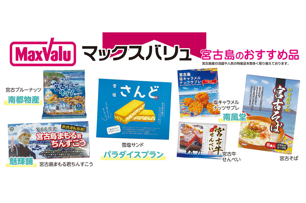 宮古島のお土産商品が豊富に揃うマックスバリュ! 観光中に買い忘れた商品や、リピートしたい商品は通販サイトで購入できる!全国発送承ります!