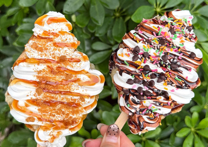 クロワッサン生地にたっぷりシュガーをまぶし、 一気にプレスして焼き上げた パリパリ食感のクルンジ。 ひと口かじると、 バターの香りと香ばしい甘さが広がり、 思わずもう一口…と手が伸びる人気メニューです。 もうひとつの楽しみが、 クロワッサン生地から作るサクふわ食感のクロッフル。 ホイップやソースを組み合わせた さまざまなフレーバーがあり、 その日の気分で選べるのも魅力。 見た目も可愛く、写真映えする一品です。