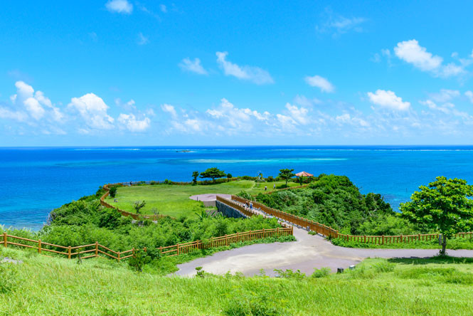 海と緑と光あふれる南城市は沖縄本島南部の東海岸、太平洋と中城湾に面した、ハートの形をしたまちです。緑豊かな高台から眺める青く美しい海は「絶景」として多くの人から人気を集めています。