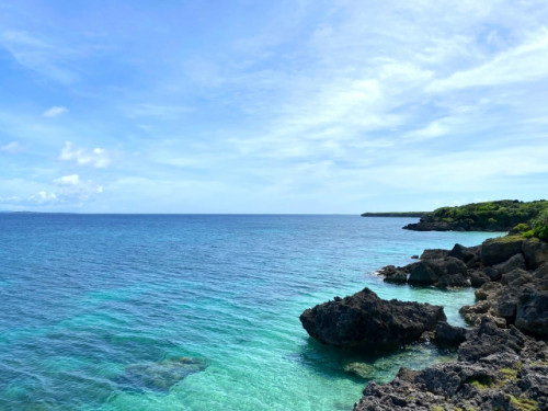 本島中部の西海岸・読谷村にある岬の周辺は国定公園「残波岬公園」として指定されています。残波岬は高さ30mの断崖絶壁が約2kmにわたって続く景勝地です。岬にそびえ立つ灯台は高さが約31mあり、灯台の上からは東シナ海を一望することができます。晴れた日には慶良間諸島や粟国島などを望むことができ、夕日スポットとしてもオススメで太陽が海に沈み込む美しい景色が見られます。